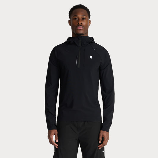 PERFORMANCE HOODED 1/2 ZIP TOP BLACK
