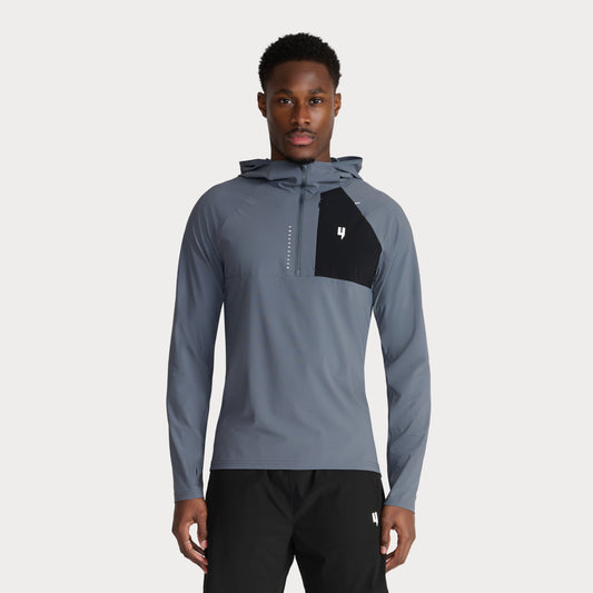 PERFORMANCE HOODED 1/2 ZIP TOP GREY/BLACK