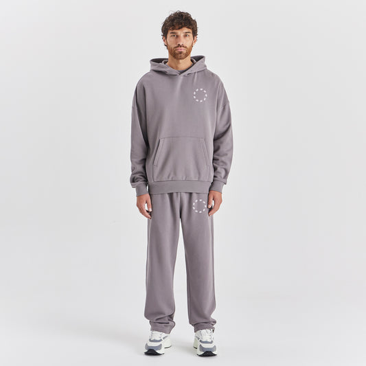 SOLID GREY RELAXED FIT HOODY WHITE CIRCLE LOGO