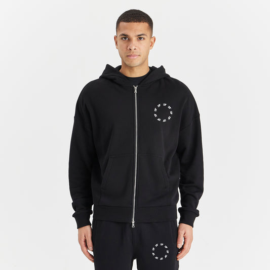 BLACK ZIP RELAXED FIT HOODY WHITE CIRCLE LOGO