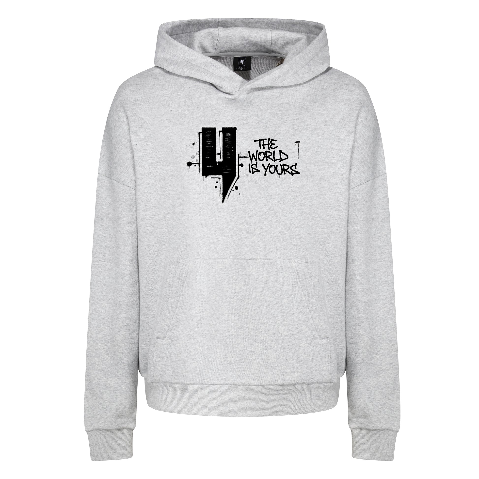 GREY RELAXED FIT GRAFFITI WORLD HOODY
