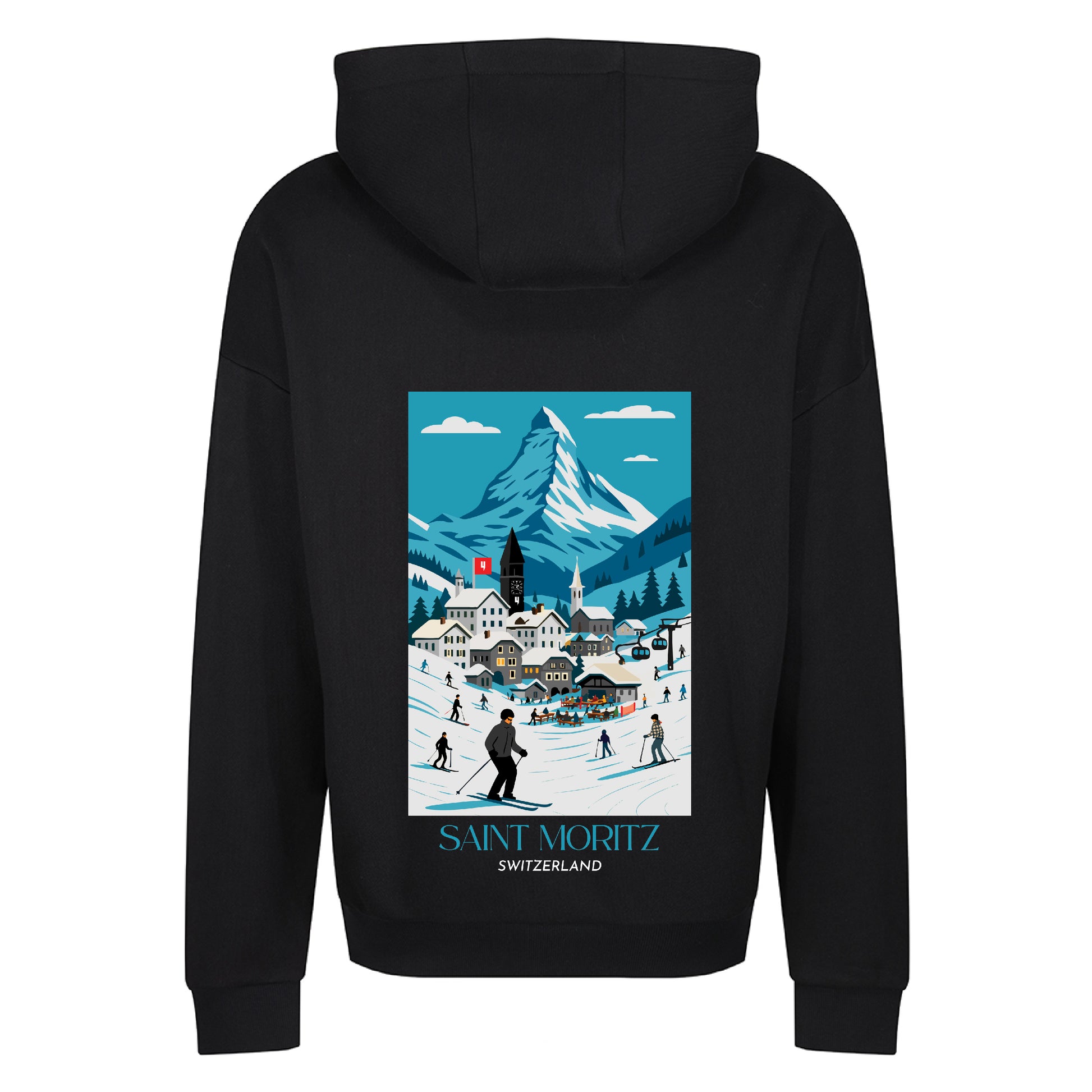BLACK RELAXED FIT HOODY ST MORITZ LOGO