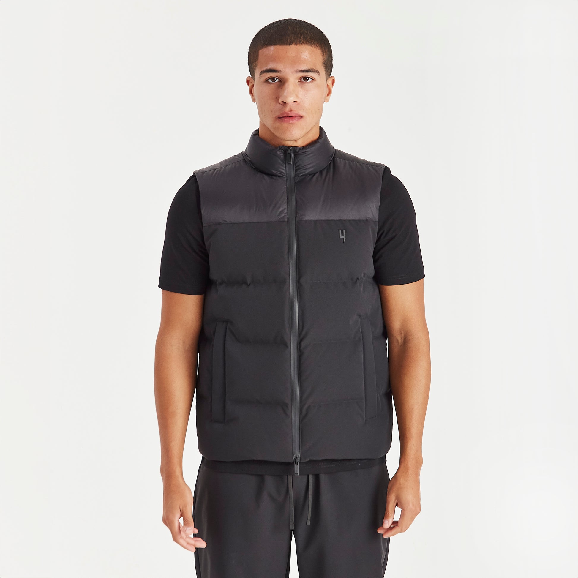 DESIGNED FOR LIGHTWEIGHT INSULATION AND LAYERED STYLING, THIS PADDED GILET IS CONSTRUCTED FROM A TECHNICAL BONDED SHELL FABRIC WITH A SMOOTH MATTE FINISH THAT IS BOTH WATER AND WIND RESISTANT.