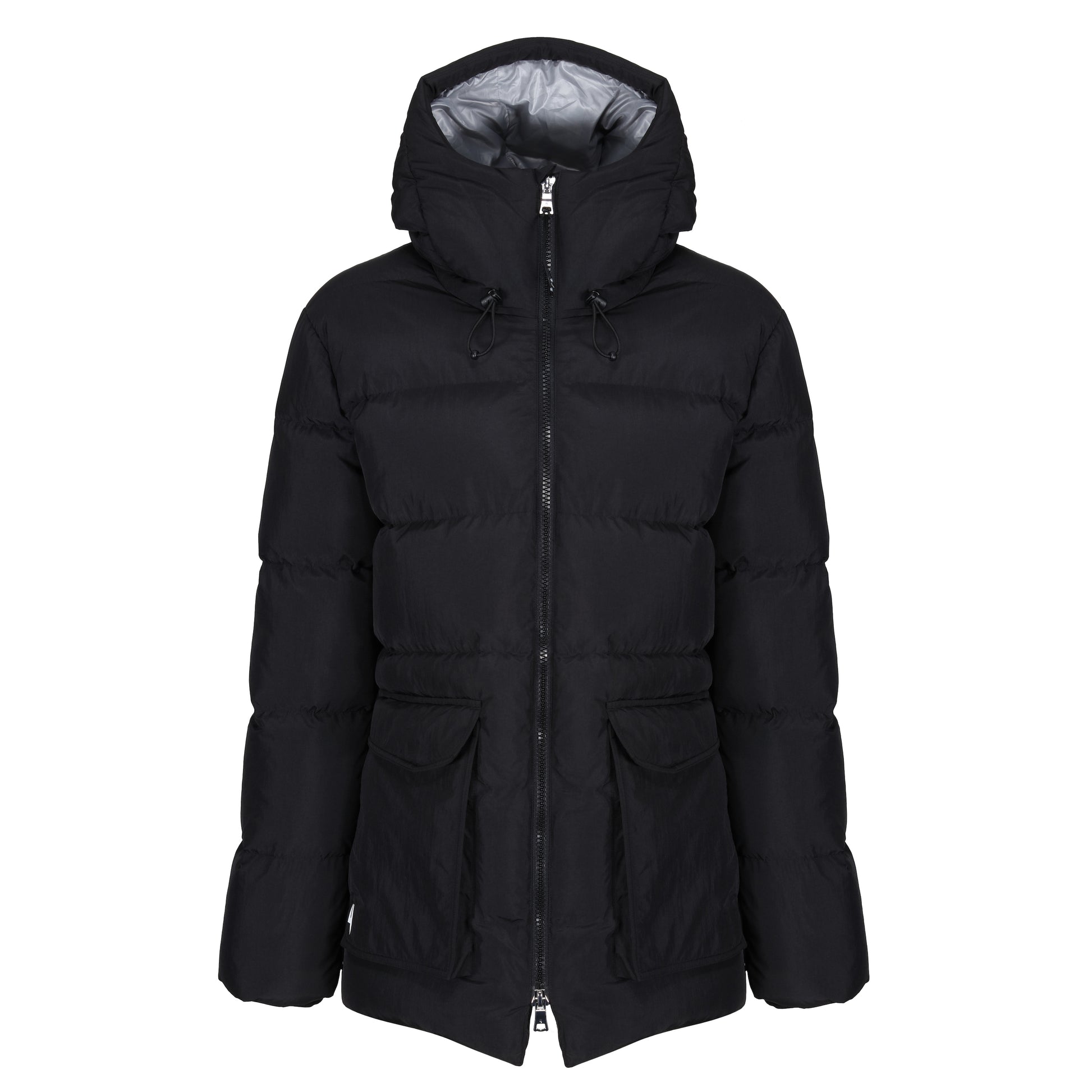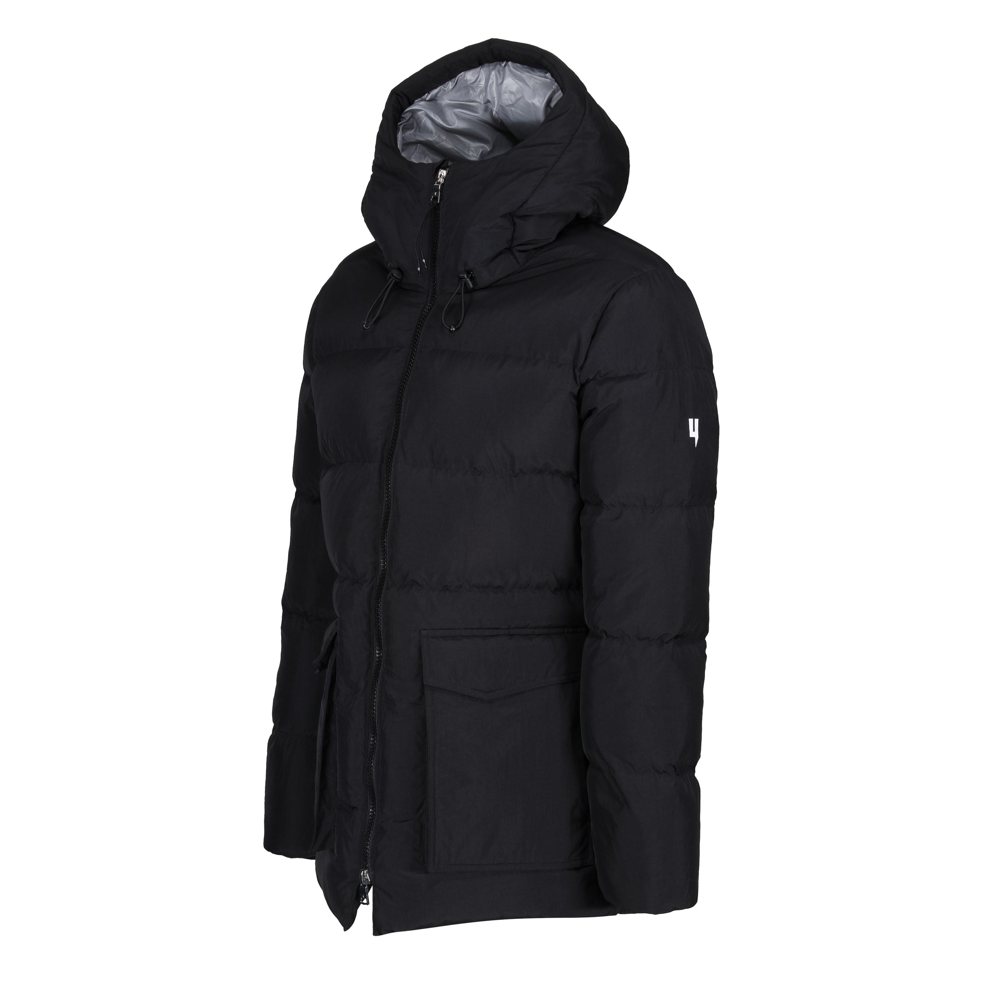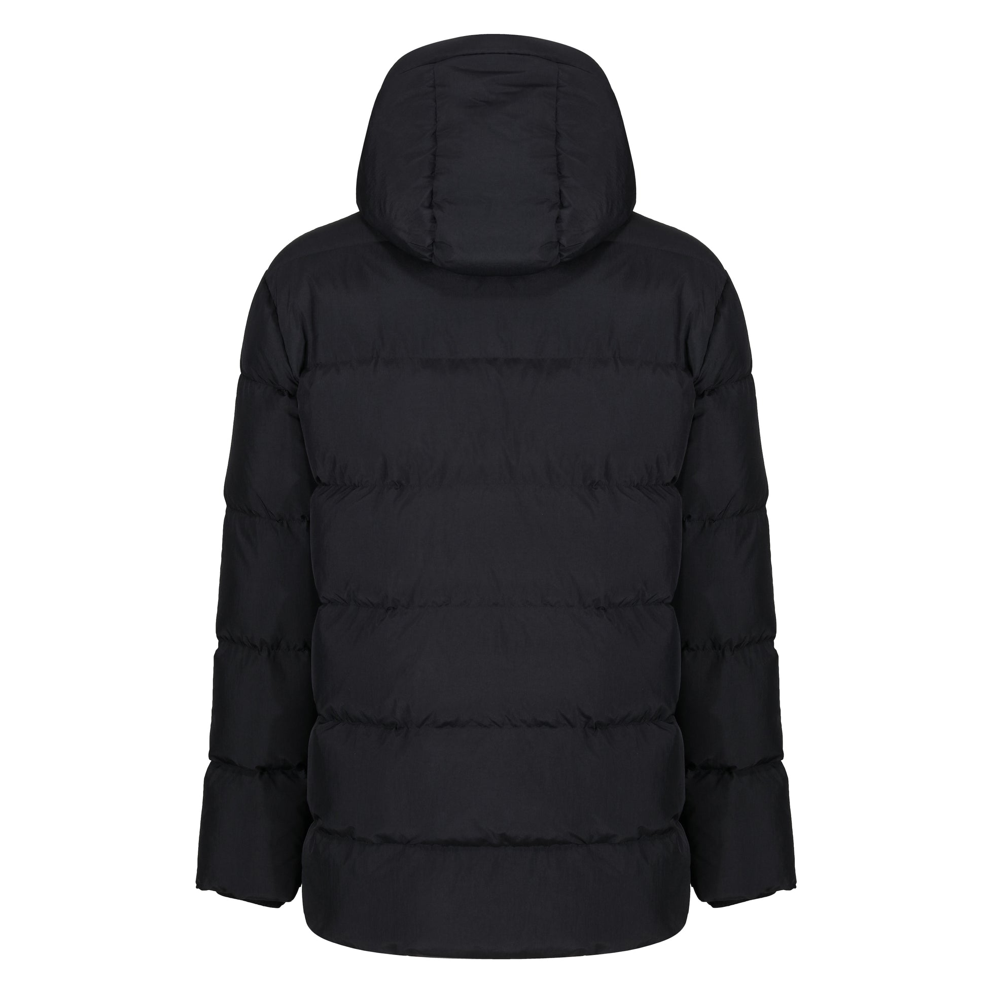 Invest in our black puffer coat for the ultimate outerwear essential this season. This padded coat is crafted from a water repellent fabric with a grey contrast lining and filled with responsibly sourced down and feather. Featuring two zipped pockets and a drawstring hood for added practicality. Finished with a branded double ended zip and a subtle printed Y logo on the upper left arm and right hand side pocket.